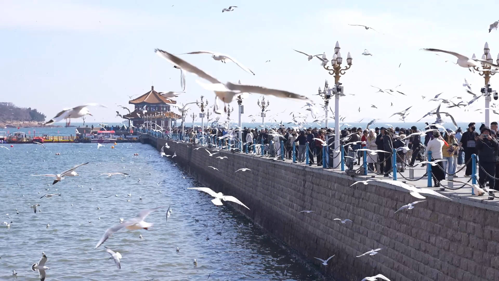 春日惜别越冬精灵 青岛栈桥万鸥北归进入倒计时